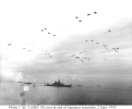 USS Hornet (CV 8) during the Battle of Midway. A wartime photo censor has removed the radar antenna from the