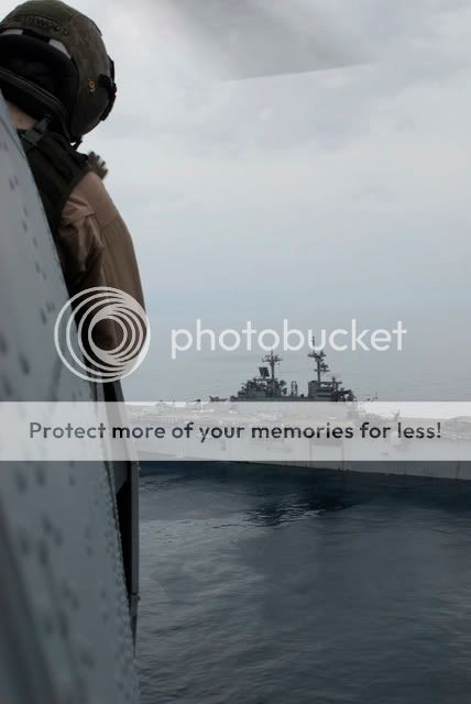 PACIFIC OCEAN (May 22, 2008) - Gunnery Sergeant Mark Greenwood, assigned to Marine Medium Helicopter Squadron (HMM) 764 currently embarked aboard USS Boxer (LHD 4), looks out the window as the helicopter returns to the ship with the U.S. Ambassador to El Salvador during Continuing Promise (CP) 2008. Boxer is currently deployed in support of the Pacific phase of CP, an equal partnership mission between the United States, Guatemala, El Salvador and Peru. U.S. Navy photo by Mass Communication Specialist 2nd Joshua Jarvis. (Released)